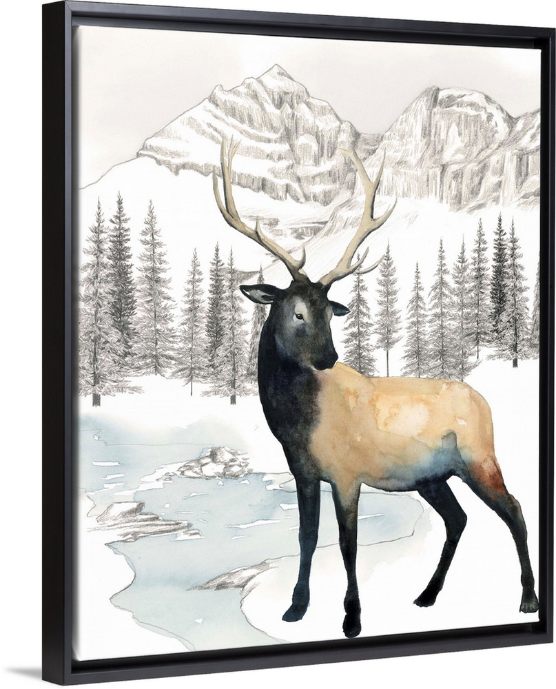 Art Rustic Cabin Wall Art Wildlife Winter Wonderland Decorative Art Outdoorsman Painting Grace Popp Watercolor Wildlife Moose and Elk