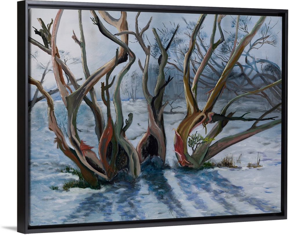 <p>Landscape painting of the eucalyptus trees in snowy mountains, Australia, enduring short, yet cold winter.</p>