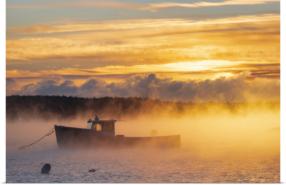 Michael Blanchette Four Seasons Winter Mist and Fog Seascapes Sunrise Photography United States Maine Transportation Boat Yellow Wall Art