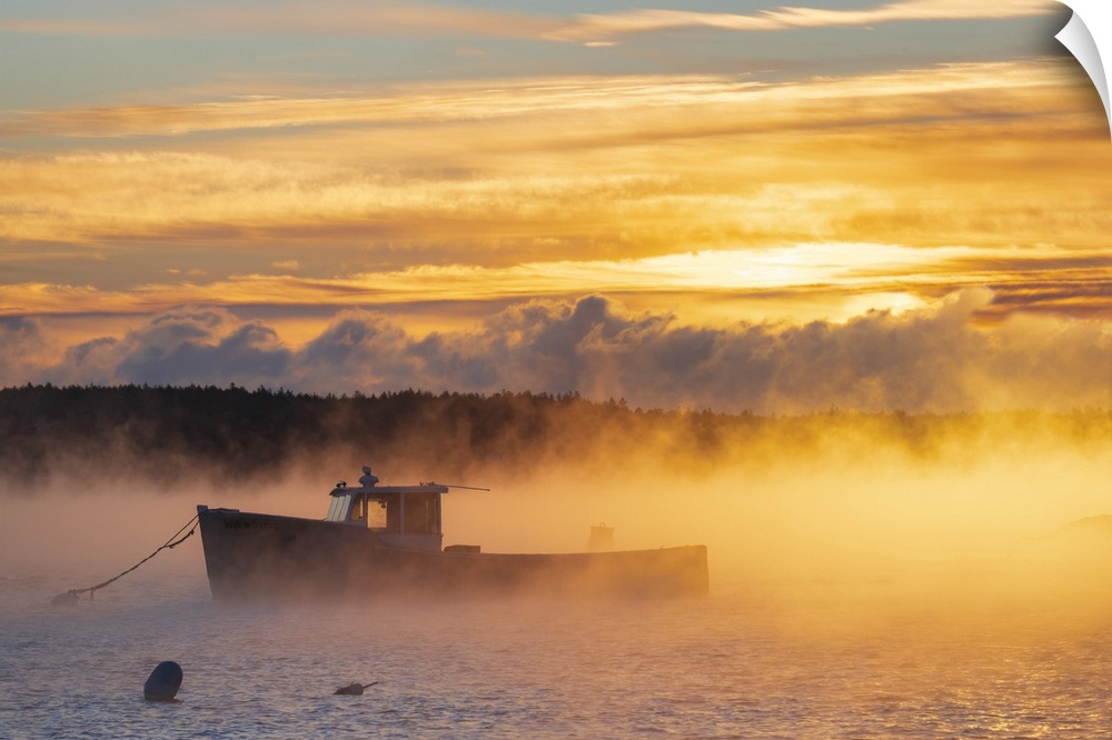 Michael Blanchette Four Seasons Winter Mist and Fog Seascapes Sunrise Photography United States Maine Transportation Boat Yellow Wall Art