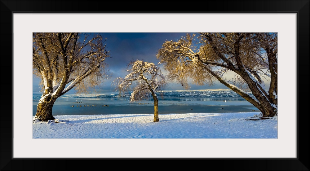 <p>Winter in the Okanagan Valley on the Kelowna beach; Kelowna, British Columbia, Canada</p>