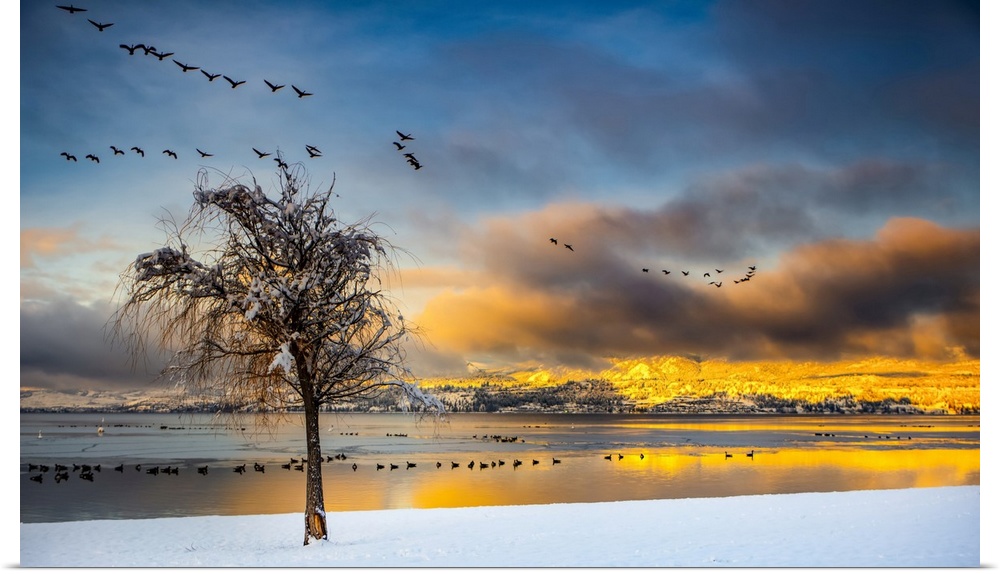 <p>Winter in the Okanagan Valley on the Kelowna beach; Kelowna, British Columbia, Canada</p>