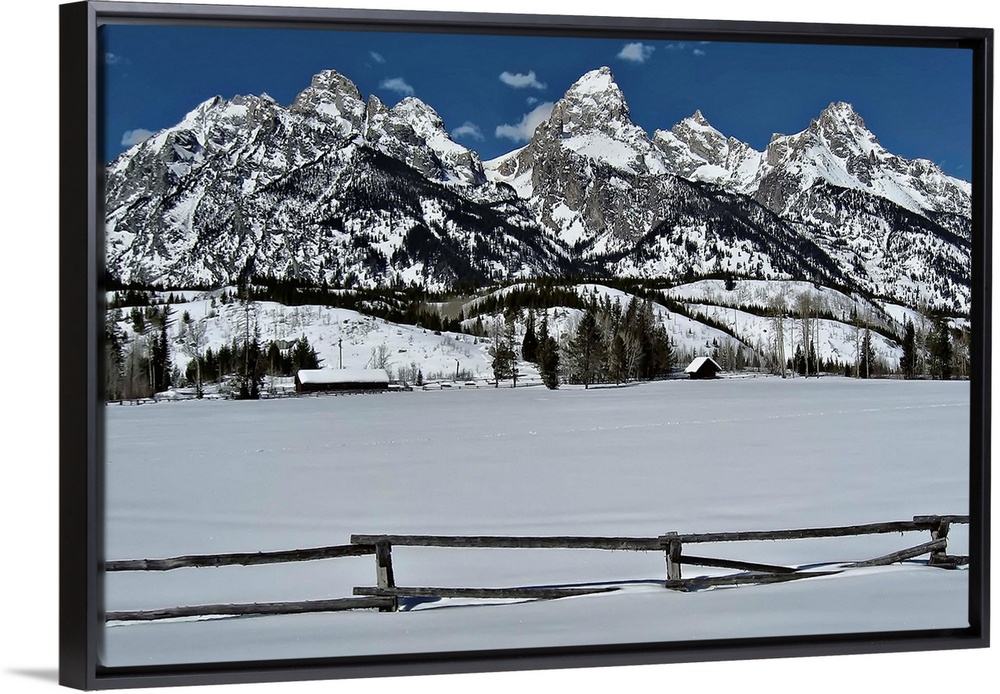 <p>Winter scene of Tetons mountain range in Grand Tetons National Park in Jackson Hole, Wyoming.</p>