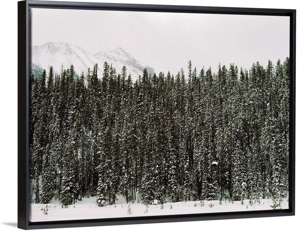 <p>Photograph of dense evergreen trees covered in snow, Emerald Lake Lodge, Banff, Canada</p>