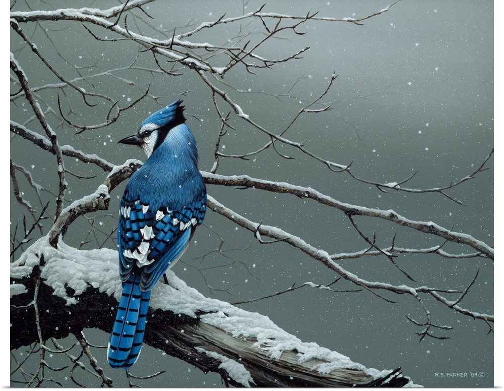 <p>A blue jay on a snow covered limb.</p>