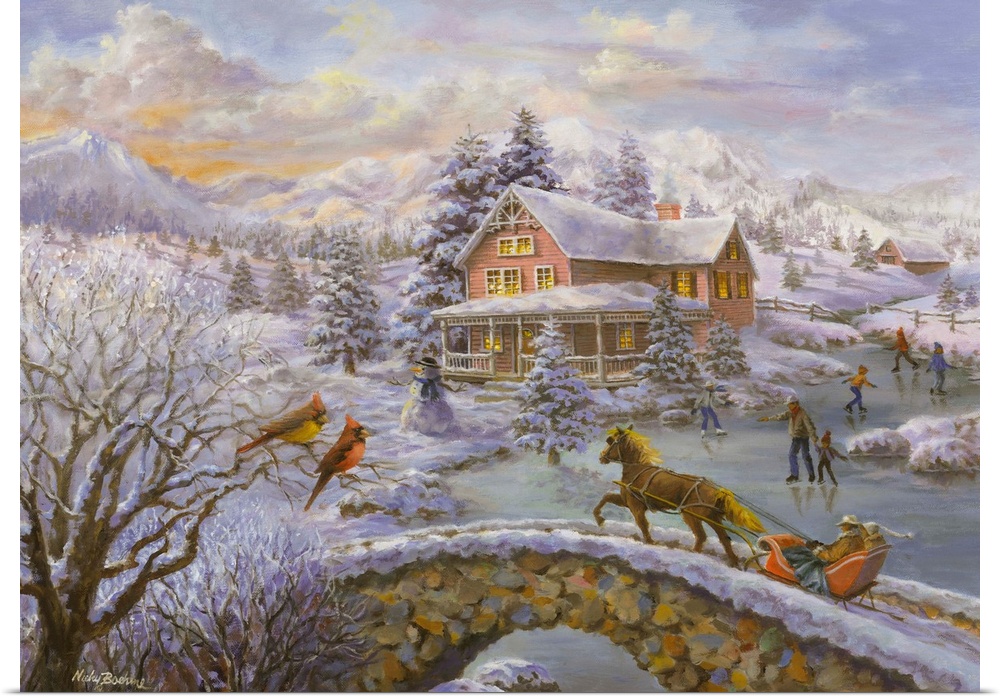 <p>Nicky Boehme imagines a world full of light and goodness in paintings that capture idyllic scenes of the laid-back life. Boehme is the consummate artist who painted as a young child and throughout her storied professional life. The dramatic interplay of light, color and mood create soothing scenery for wall art that will complement the atmosphere in quiet spaces such as bedrooms, reading nooks or dens. The world through the eyes and skilled brush strokes of Nicky Boehme glitters with romanticism and realism. You can almost taste the snow flurries covering a winter scene or hear the brook gurgling past a remote homestead.</p>