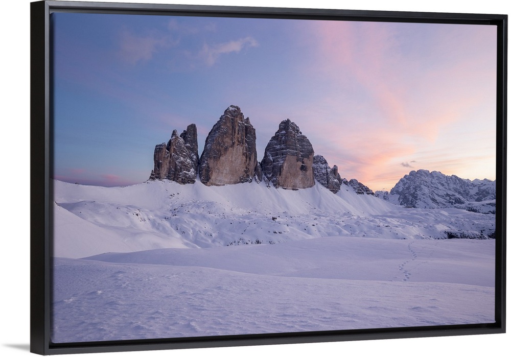<p>Winter sunset of the Three Peaks, Bolzano district, South Tyrol, Italy, Europe.</p>