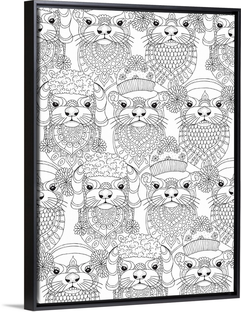 <p>Contemporary black and white line art of animals wearing Winter hats and sweaters.</p>