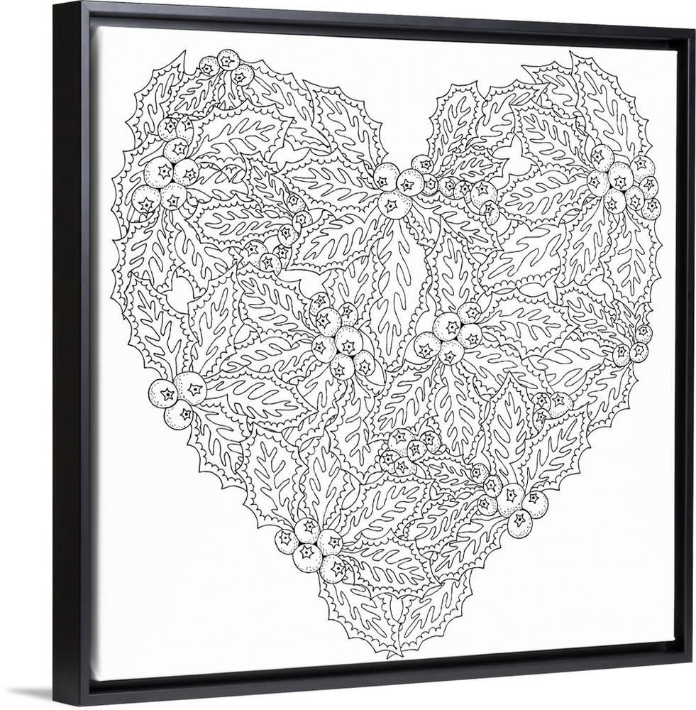 <p>Black and white lined design of a heart made up of mistletoe and holly.</p>