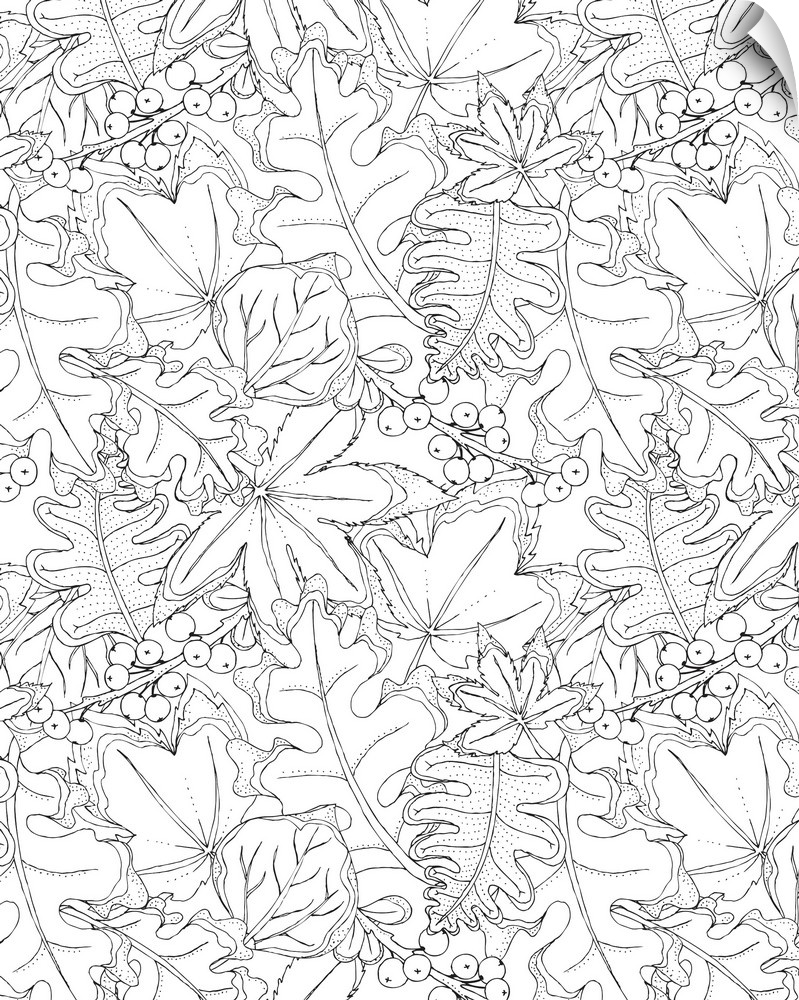 <p>Contemporary black and white line art with a collage of holly and other winter leaves.</p>