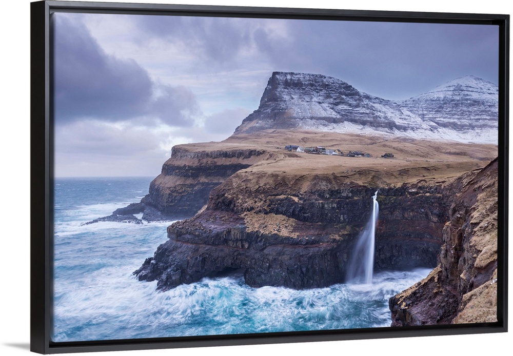 <p>Wintry conditions at Gasadalur on the island of Vagar, Faroe Islands, Denmark, Europe. Winter (March) 2015.</p>