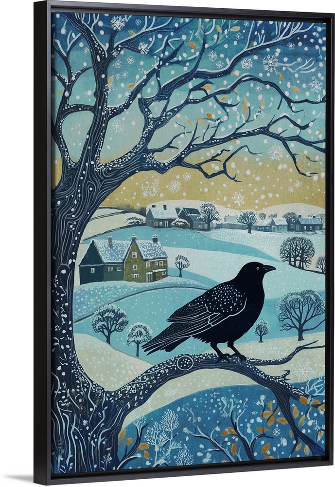 Art Contemporary Art Blue and White Christmas Graphic Art Tim Kahane Wildlife Bird Crow and Raven