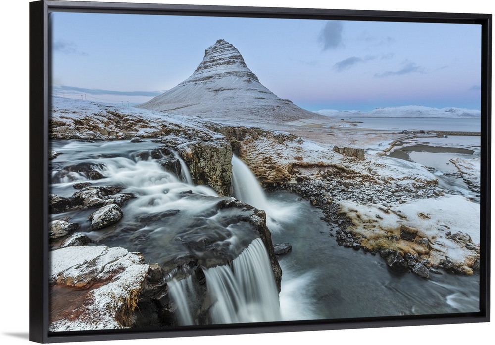 <p>Wintry waterfall below Kirkjufell aka Church Mountain on the Snaefellsnes Peninsula in western Iceland.</p>