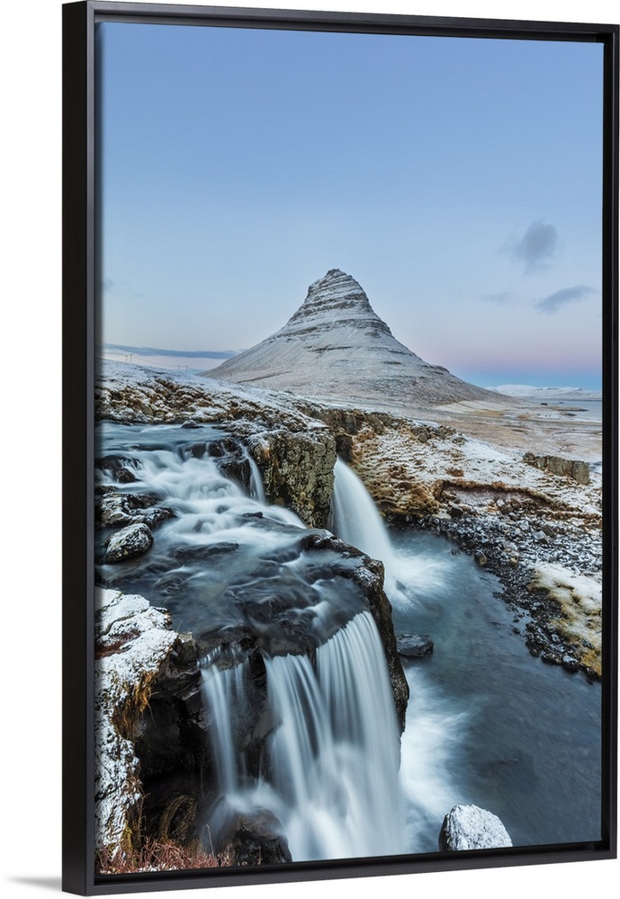 <p>Wintry waterfall below Kirkjufell aka Church Mountain on the Snaefellsnes Peninsula in western Iceland.</p>