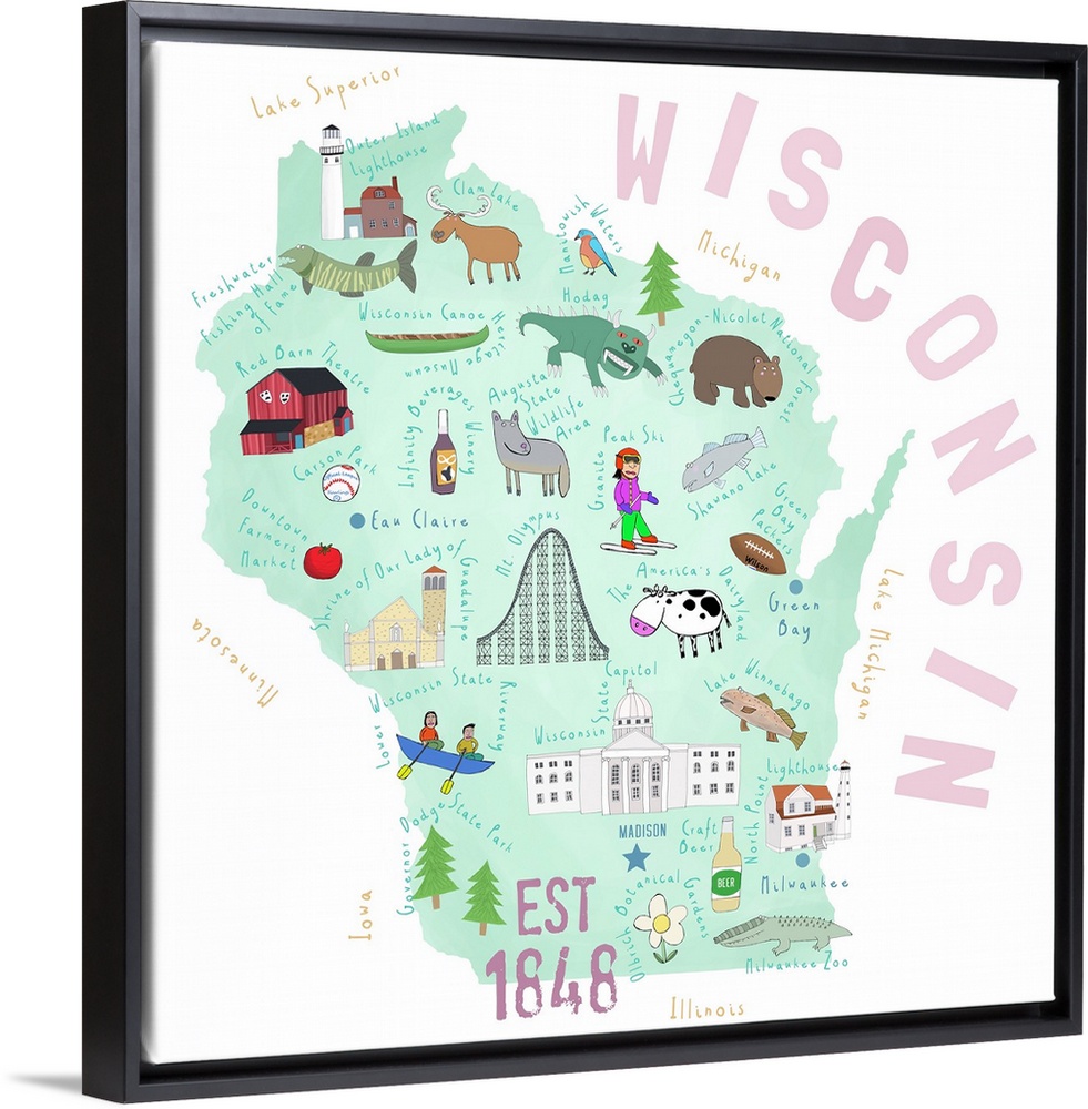 Art Carla Daly Decorative Art Educational Educational Posters Graphic Art Maps Art Maps Educational Maps Wisconsin