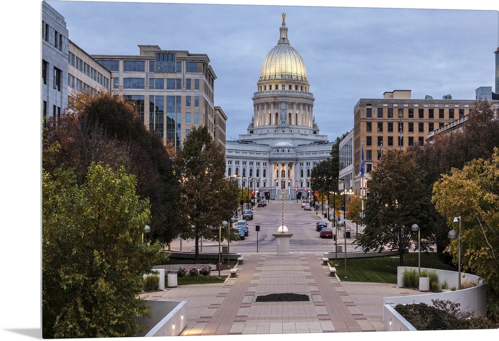 <p>Looking down Wisconsin Avenue at the Wisconsin State Capitol Building. Madison, Wisconsin.</p>