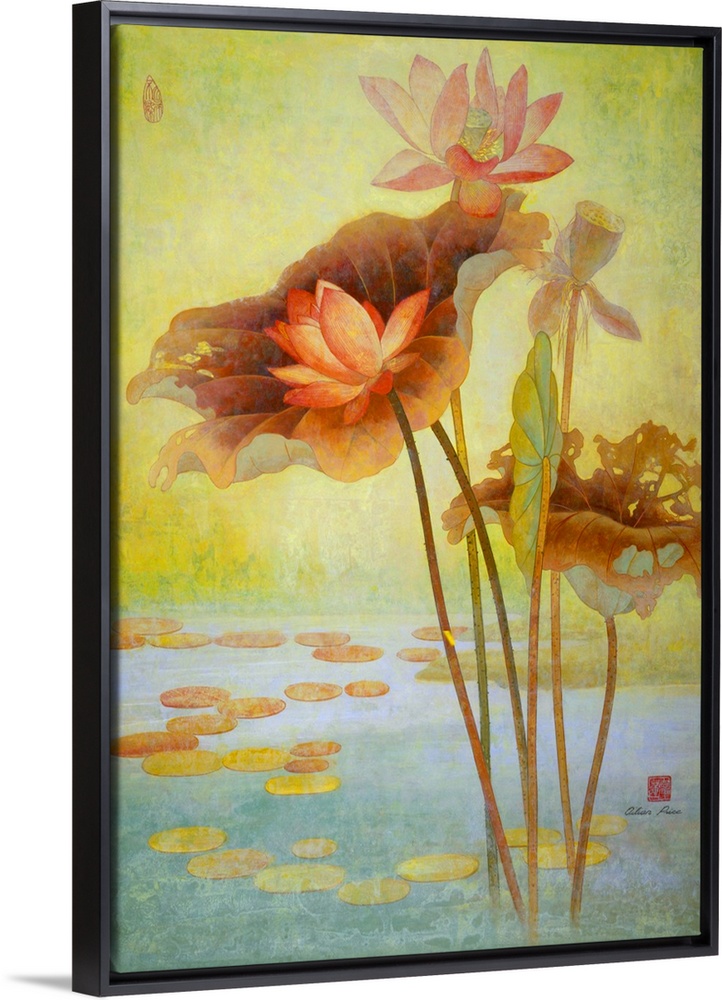 Art Asian Art Plants and Flowers Contemporary Art Plants and Flowers Florals Water Lily Green Wall Art Painting Ailian Price