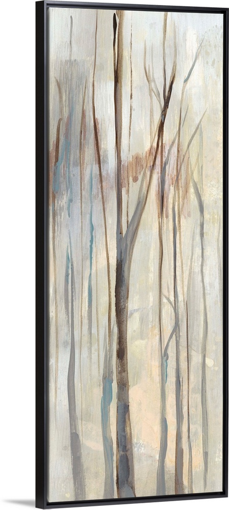 <p>Neutral-toned landscape with tall birch trees.</p>