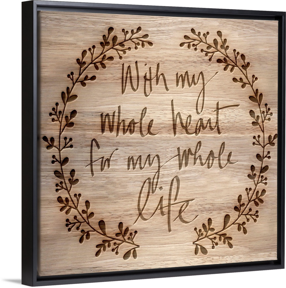 <p>"With my whole heart for my whole life" on a wood grain background.</p>