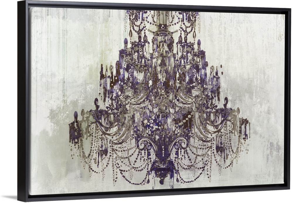 <p>Illustration of a chandelier with pops of purple on a gray toned background with a streaky texture.</p>