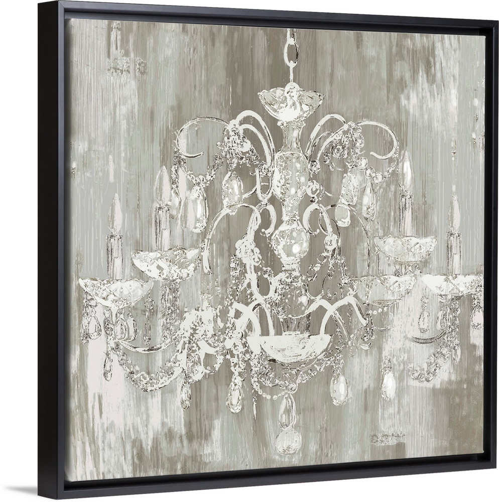<p>White silhouette of a chandelier on a gray and white streaked background.</p>