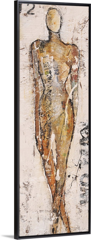 <p>Contemporary abstract painting of a figure in tan tone with stenciled numbers.</p>