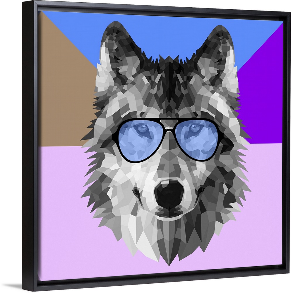 <p>Wolf head wearing sunglasses made up of a polygon mesh.</p>