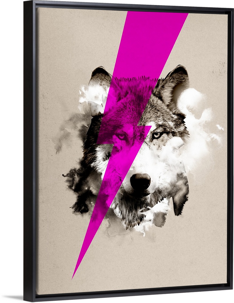 <p>Decorative artwork of a wolf head revealed by smoke with a purple lightening bolt going across the wolf's eye.</p>