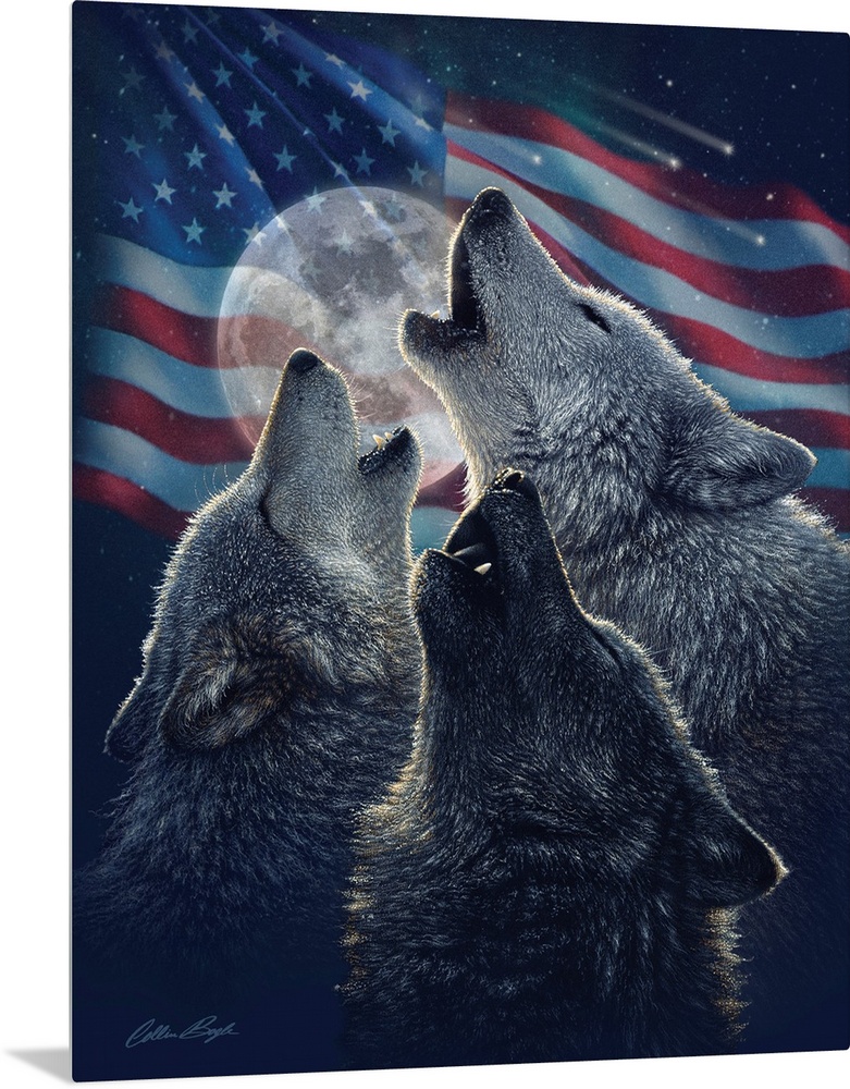 Art Collin Bogle Contemporary Art Painting Stars and Stripes Wildlife Wolf