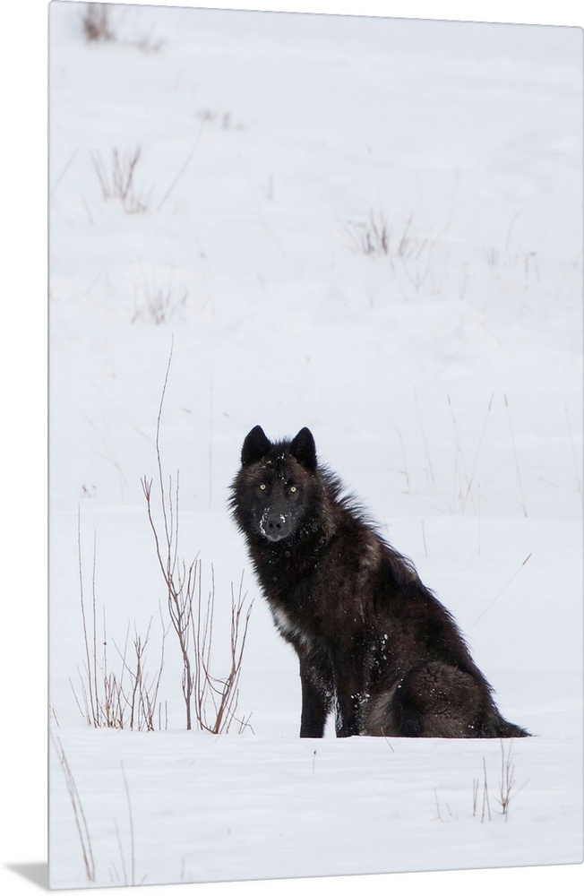 <p>Wolf (Canis lupus) waiting in snow in Yellowstone National Park, Wyoming, United States of America</p>