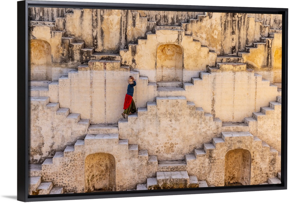<p>woman carrying jug of water at stepwell in jaipur, india</p>