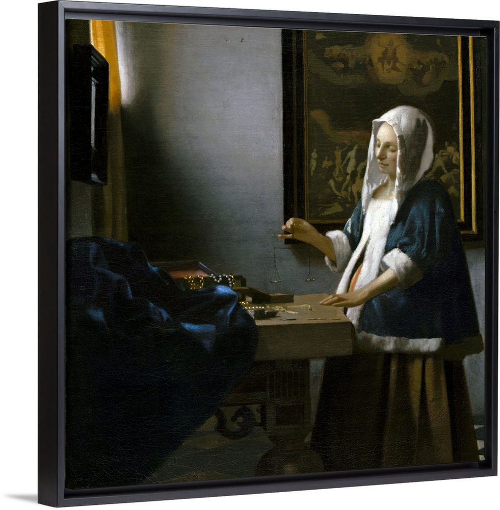 <p>Johannes Vermeer (Dutch, 1632 - 1675), Woman Holding a Balance, c. 1664. Originally oil on canvas, National Gallery, Washington, D.C.</p>