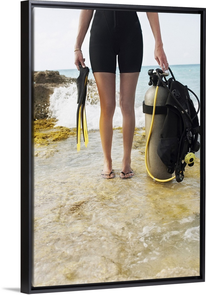 <p>Woman holding scuba diving equipment</p>