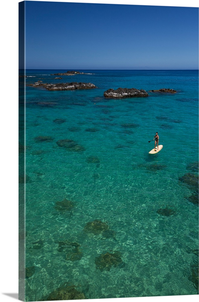 <p>Woman paddle boarding in ocean, Hawaii, USA</p>