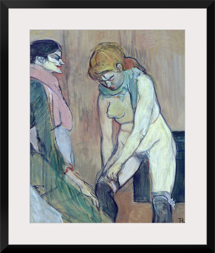 <p>XIR30626 Woman Putting on her Stocking, or Woman of the House, c.1894 (oil on card) by Toulouse-Lautrec, Henri de (1864-1901); 58x46 cm; Musee d'Orsay, Paris, France; (add. info.: Femme Tirant son Bas ou Femme de Maison); ; French, out of copyright</p>