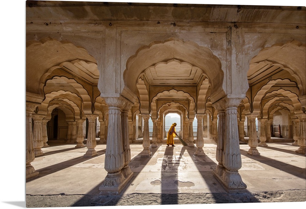 <p>Woman sweeping in the Amber Fort in Jaipur, India.</p>