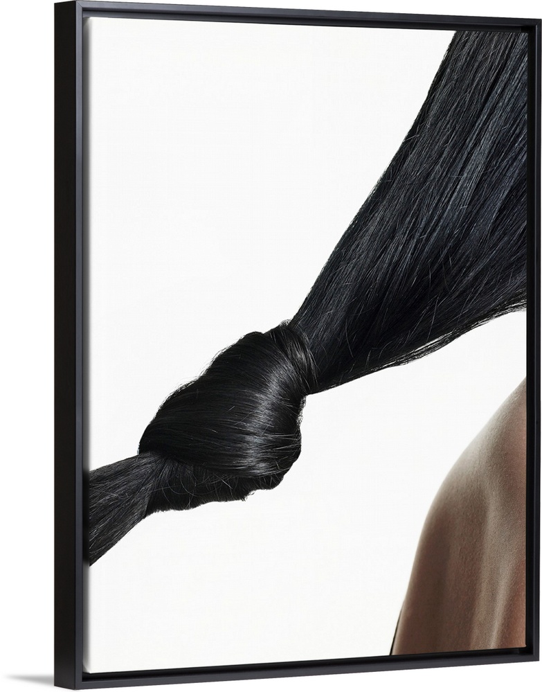 <p>Woman with hair tied in knot, close-up of hair</p>