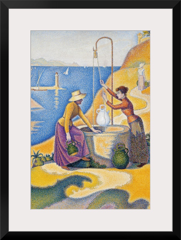 <p>Women at the Well, by Paul Signac, 1892, 19th Century, oil on canvas, cm 195 x 131 - France, Ile de France, Paris, Muse dOrsay. All. Women well youth people Provencal well sea light blue green yellow lilac path trail vase. (110082) Everett Collection\Mond</p>