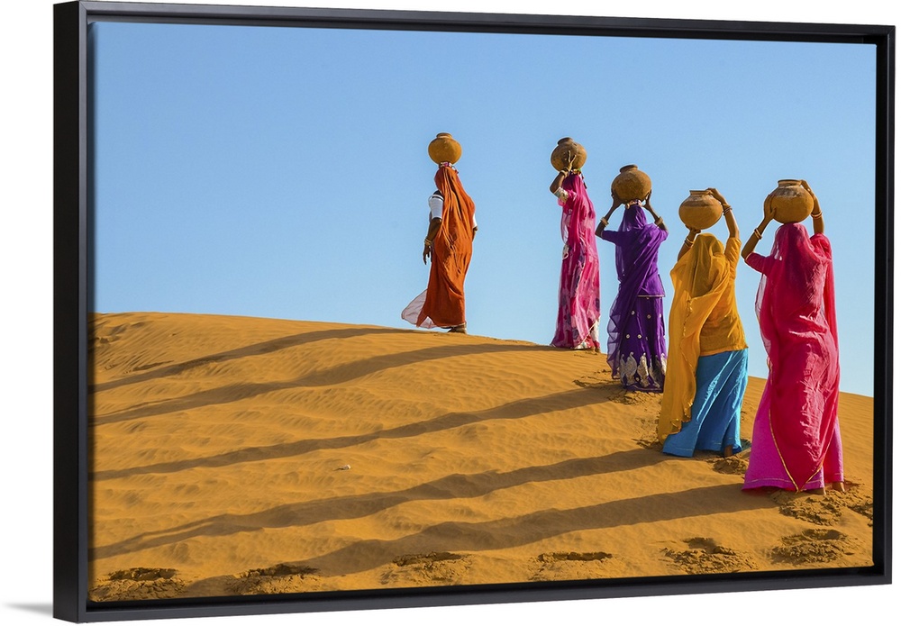 <p>Women Carrying Jugs Of Water In The Hot Summer Desert</p>