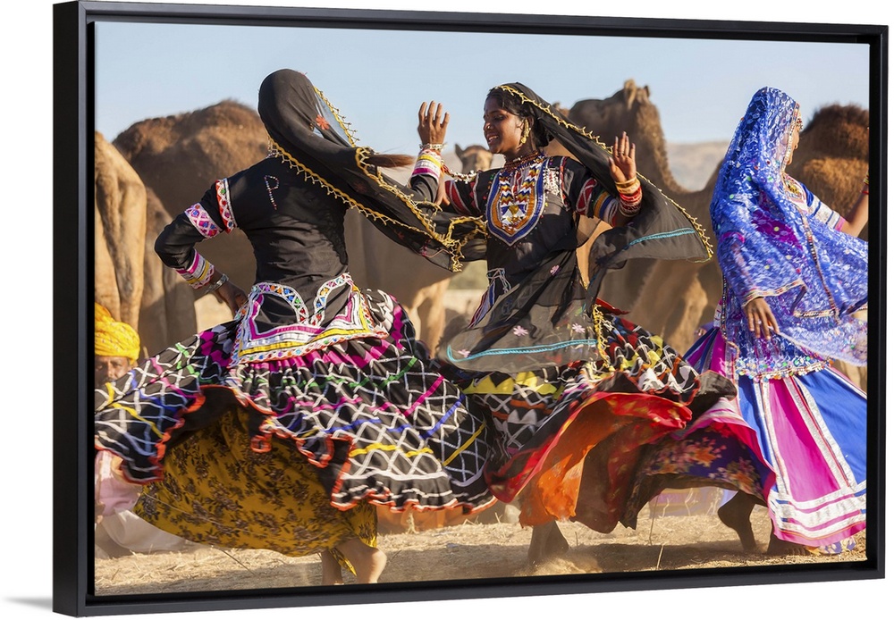 <p>Dancers with camels, Pushkar camel fair, Pushkar, Rajasthan State, India, Asia</p>