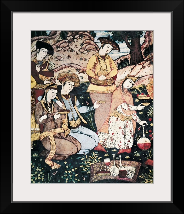 <p>Banquet of Abbas I. 17th c. IRAN. Esfahan. Chehel Sotoun - The Palace of forty columns. Detail. Persian art. Fresco. -</p>