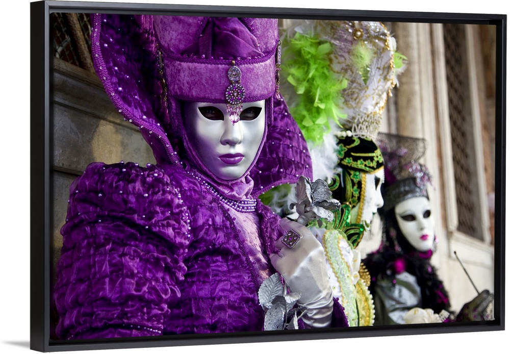 <p>Women in masks and colorful costumes are photographed during a festival in Italy.</p>