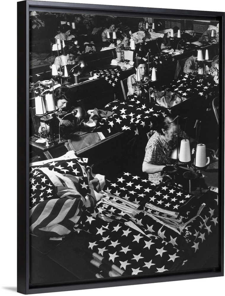 <p>Women sewing American Flags in Brooklyn, New York City on July 24, 1940. Photo from the Records of Naval Districts and Shore Establishments, by Margaret Bourke-White.</p>