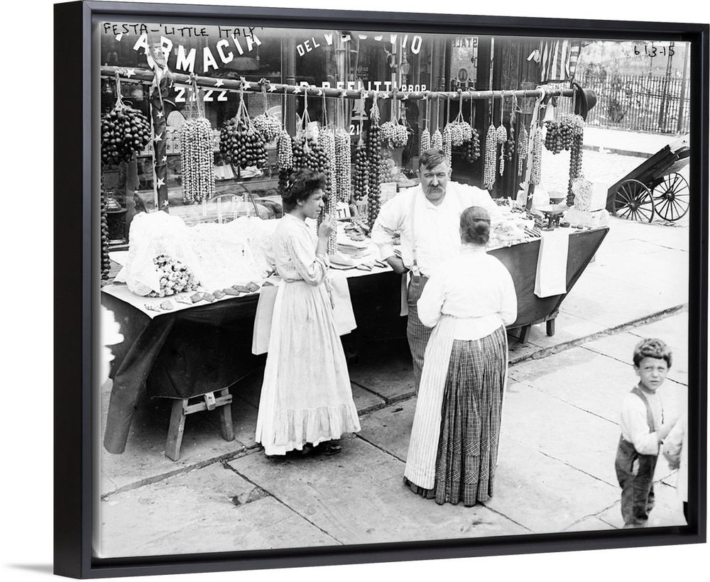 <p>Women shopping at a street vendor's table in Little Italy, New York City. Photograph, c1905.</p>