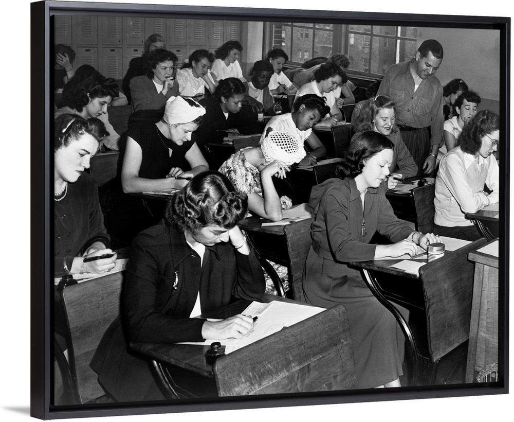 <p>Women taking the qualifying exam for the New York City Police Department. Photograph by Dick De Marsico, 1947.</p>