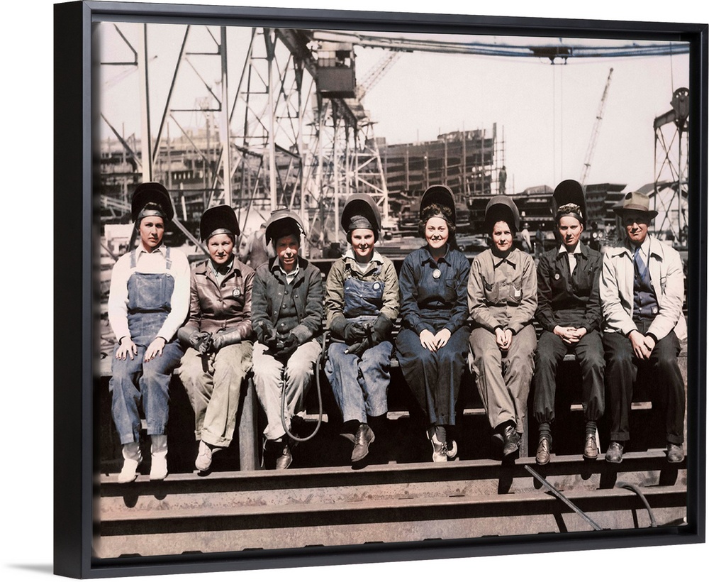 <p>Women welders wearing protective clothing and seated outdoors.</p>