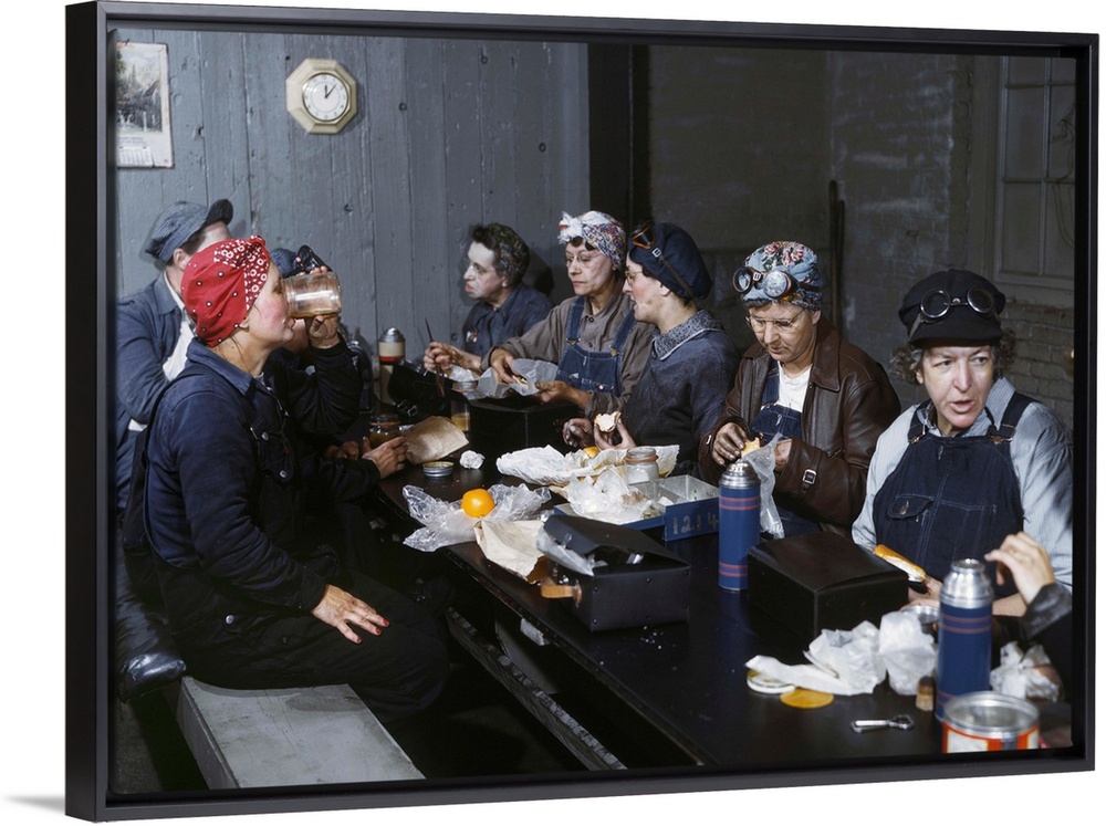 <p>Women workers at the Chicago and North Western railroad on their lunch break in Clinton, Iowa. Photograph by Jack Delano, May 1943.</p>