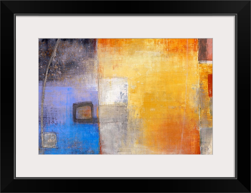 <p>Abstract artwork that has different blocks of color that has smaller blocks laid over top.</p>