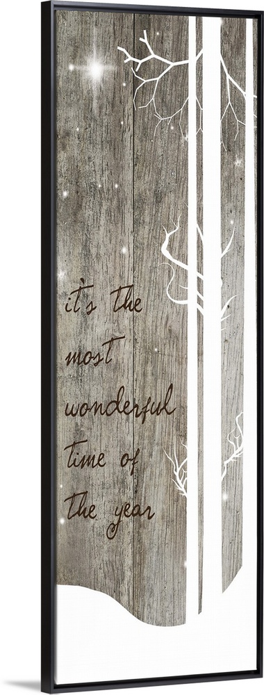 <p>Holiday themed artwork of white silhouetted trees with a carol lyric.</p>
