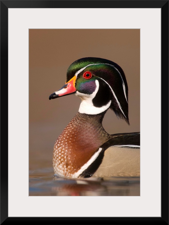 <p>wood duck (Aix sponsa), Headshot, Swimming, Male, Lapeer State Game Area, MI</p>